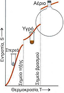 | Μεταβολή της εντροπίας σε συνάρτηση με τη θερμοκρασία και τη μετάβαση του συστήματος από μια φυσική κατάσταση σε μια άλλη |